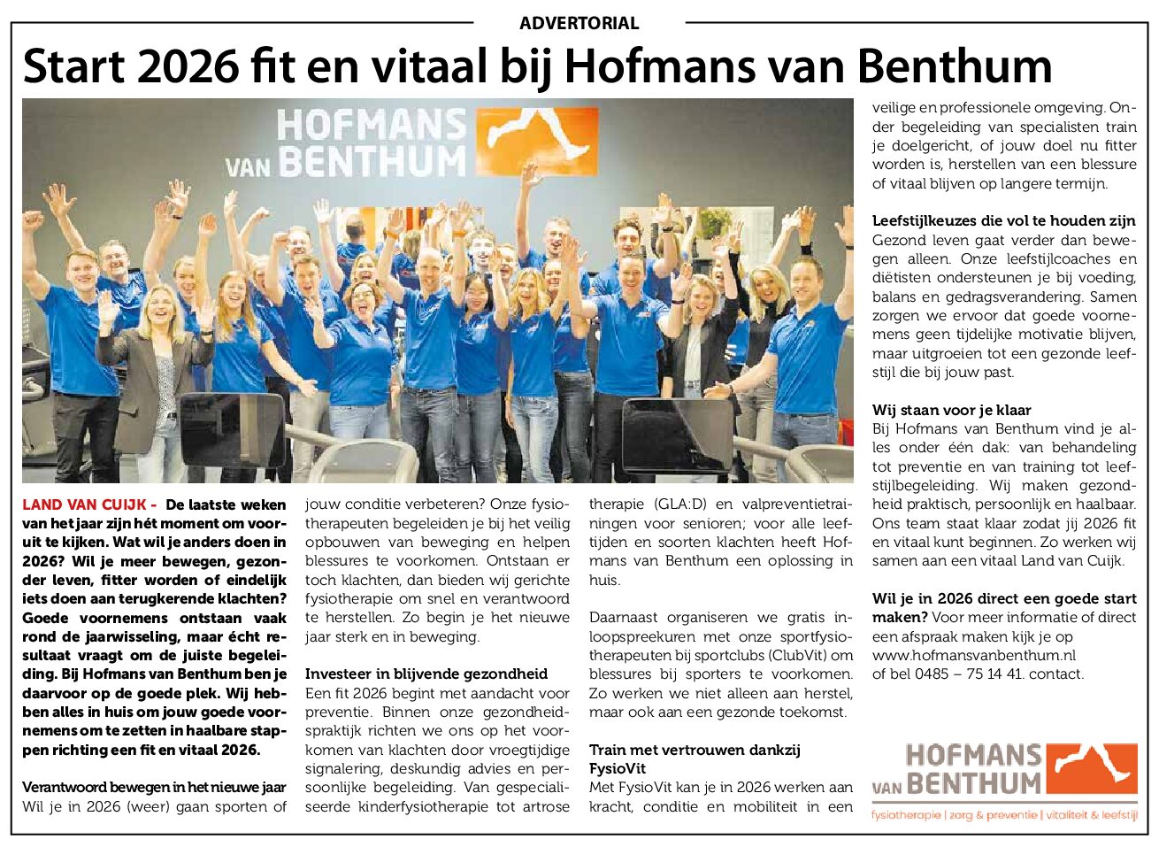 Start 2026 fit en vitaal bij Hofmans van Benthum